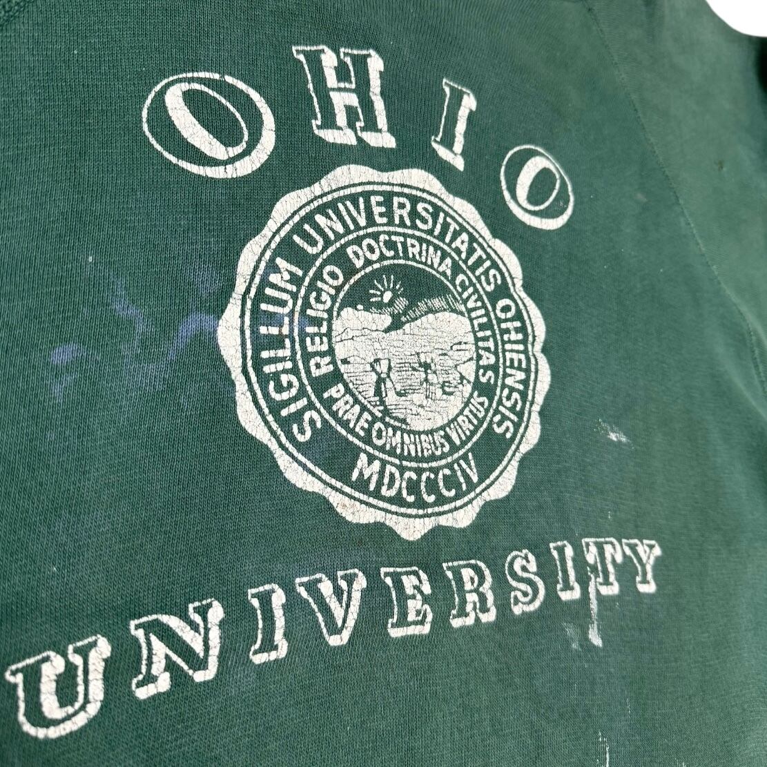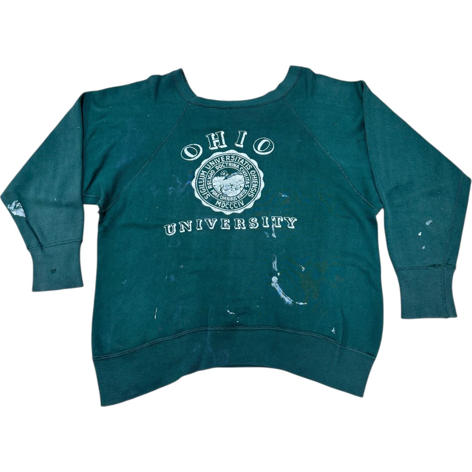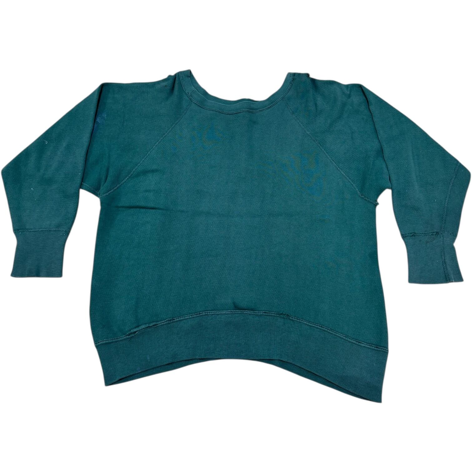 50〜60's bodygard フェードグリーン ペンキ フロッキープリント ラグラン vintage sweat